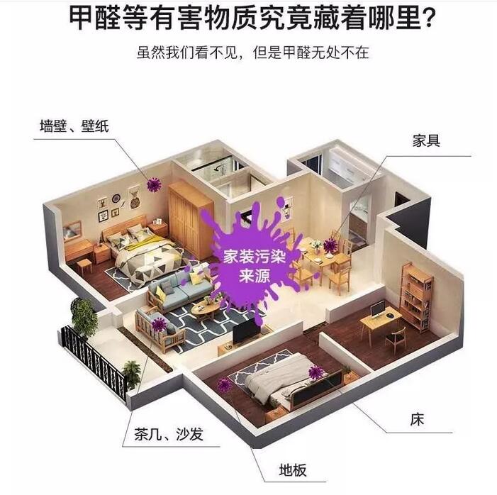 装修后的污染是无处不在的,为了尽量避免甲醛污染,装修后一般都会预留半年的时间来通风散发出有害气体,尤其前期的通风是有效的。但是呢,通风耗费的时间比较长,甲醛又是不断地挥发,单单靠通风也是不能完全消灭甲醛的。