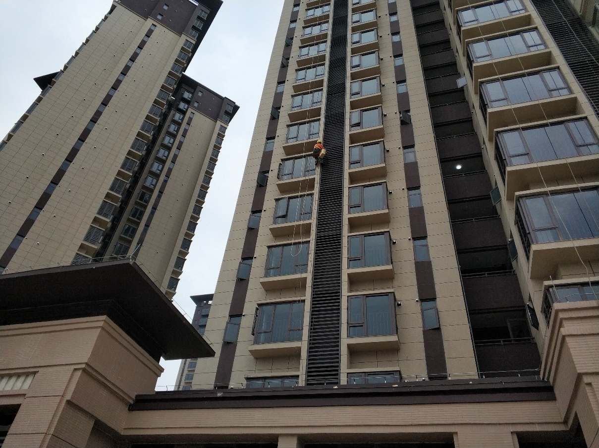 1、气候条件:外墙清洗必须要在良好的气候条件下进行,风力应小于4级,4级以上停止工作。因此,工作前应测定风力,尤其是高空风力。另外,下雨、下雪、有雾、能见度差以及高温(35℃以上)和低温(0℃以下)等条件下都不适合进行外墙清洗。
