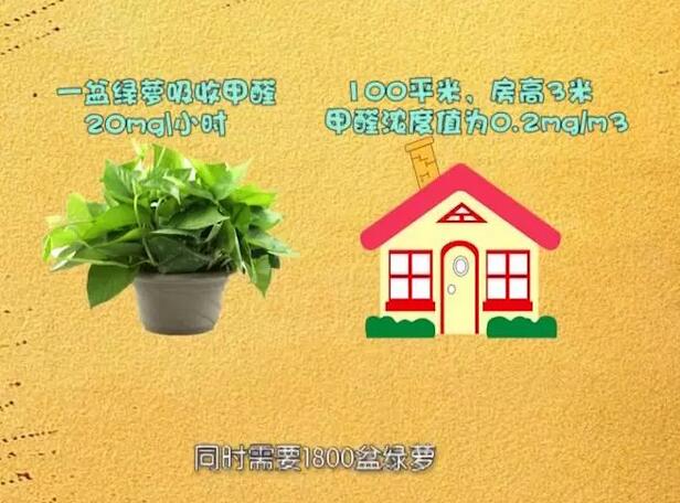 实验之后,我们进一步查阅资料得出一组数据,一盆绿萝每小时吸收的甲醛平均为20微克。以一个100平米,房高3米,甲醛浓度值为0.2mg/m3的房间来讲,同时需要1800盆绿萝,几乎要把整个房间添满,才能将甲醛降为国家标准0.08 mg/m3,这还是在白天光线充足、并且要保证在吸收的过程中不再有甲醛释放的情况下。因此,靠绿萝来除净大房间里的甲醛根本不现实。